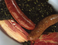 · Der "Kohl" wird von Stielen und Strünken befreit und mehrmals gründlich gewaschen. Dann lässt man ihn 5 Minuten in kochendem Salzwasser überwallen. Hiernach wird er tüchtig ausgedrückt und auf einem Brett kleingeschnitten. Das Schmalz wird im Topf ausgelassen und die kleingeschnittenen Zwiebeln werden darin angeröstet. Der Kohl wird dazugegeben und kurz mitgeröstet. Danach salzen und mit Wasser auffüllen! Speck, Kassler und Hafergrütze werden hinzugegeben. Alles muss jetzt ca. 1 - 1 1/2 Stunden dünsten. In der letzten halben Stunde kommt dann noch die Mettwurst hinzu. Vor dem Servieren schmeckt man noch mit Salz und Pfeffer ab. Zu diesem Essen werden Salzkartoffel serviert. Natürlich schmeckt dieses Essen wie alle Kohlgerichte besonders gut aufgewärmt und zu Bratkartoffeln serviert.